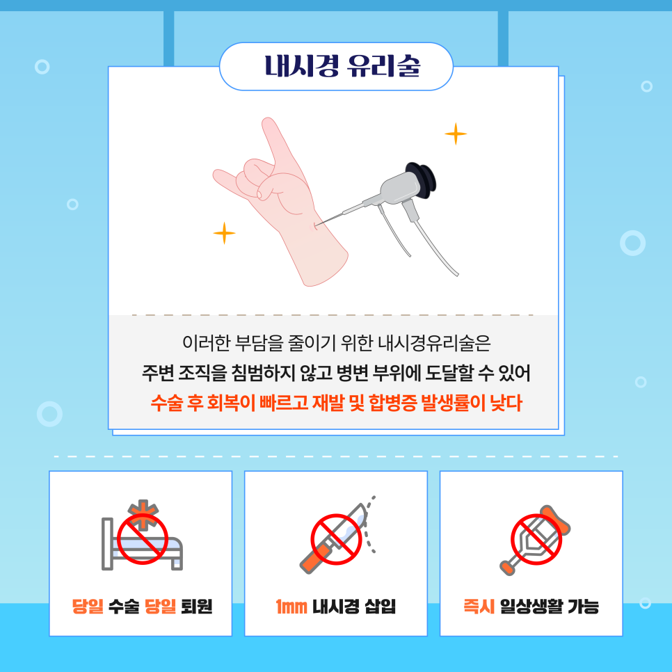 - 평균 수술 시간: 약 0.6일(당일 수술·퇴원)