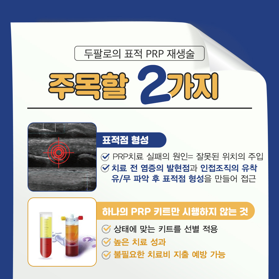즉, PRP는 무작정 맞는 치료가 아니라 정밀 타겟 치료가 되어야 효과를 볼 수 있습니다.